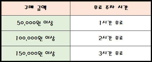 - 롯데마트 5만 원 이상 구매: 3시간 무료